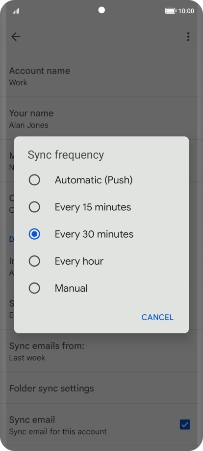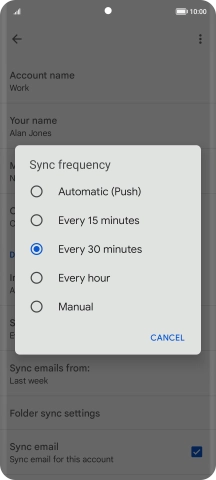 8 Select period for email message synchronisation