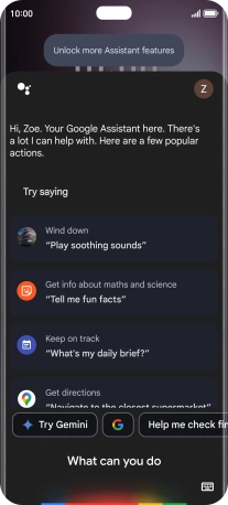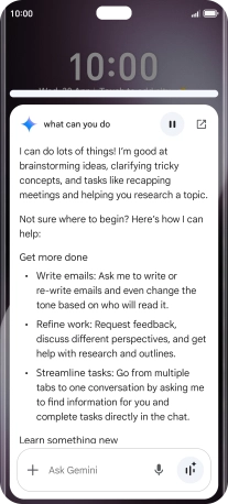 Say "What can you do?" to see more examples of voice control commands from Gemini.