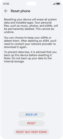 Press RESET. Wait a moment while the factory default settings are restored. Follow the instructions on the screen to set up your phone and prepare it for use.