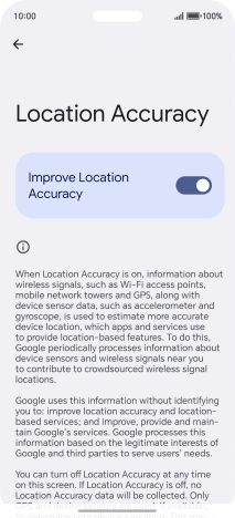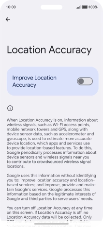 If you press the indicator next to "Improve Location Accuracy" to turn off the function, your phone can find your exact position using the GPS satellites but it may take longer as there is no access to supplementary information from the mobile network or nearby Wi-Fi networks.