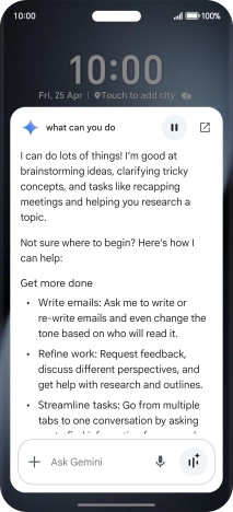Say "What can you do?" to see more examples of voice control commands from Gemini.