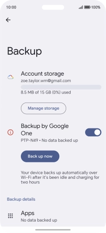 Press the indicator next to "Backup by Google One" to turn on the function.