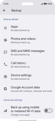 Press the indicator next to "Back up using mobile or metered Wi-Fi data" to turn the function on or off.