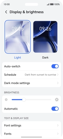 If you select Custom time, follow the instructions on the screen to select the required period of time for dark mode.