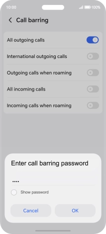 2. Turn call barring on or off