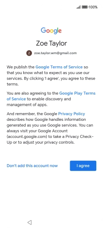Press I agree and follow the instructions on the screen to select settings for your Google account.
