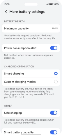 2. Turn optimised battery charging on or off