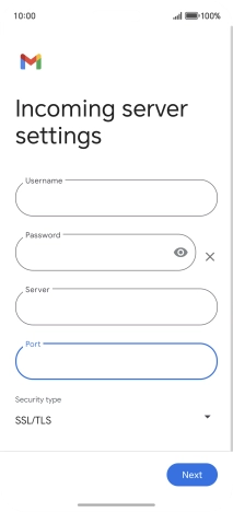 Press the field below "Server" and key in the name of your email provider's incoming server.