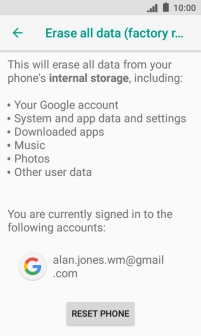 Press ERASE EVERYTHING. Wait a moment while the factory default settings are restored. Follow the instructions on the screen to set up your phone and prepare it for use.