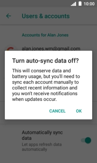 Press the indicator next to "Automatically sync data" to turn the function on or off.