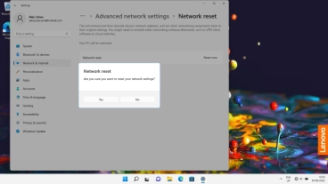 Click Yes to reset your network settings. Your laptop needs to restart and you must establish a connection to a Wi-Fi of mobile network again.