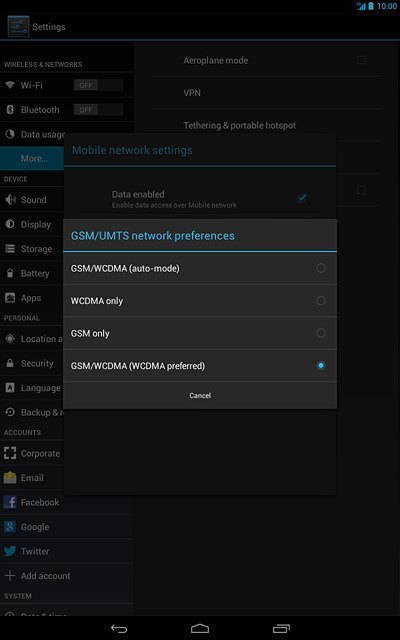 If you select GSM/WCDMA (WCDMA preferred), your tablet will select 3G as the preferred network mode.