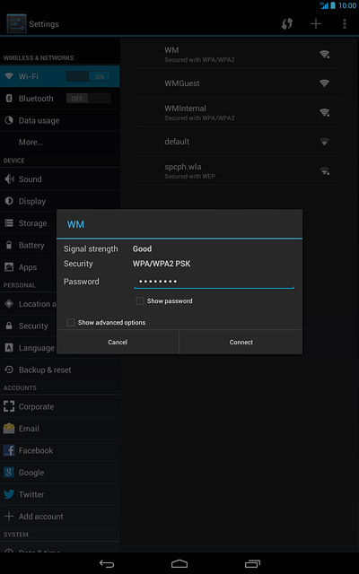 Press the indicator next to "Wi-Fi" until the function is turned on.
