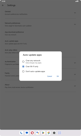 To turn on automatic update of apps using Wi-Fi, press Over Wi-Fi only.