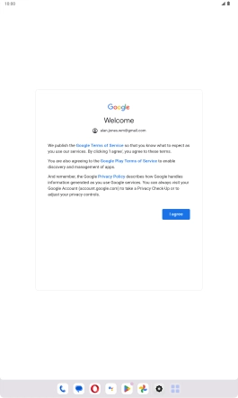 Press I agree and follow the instructions on the screen to select settings for your Google account.