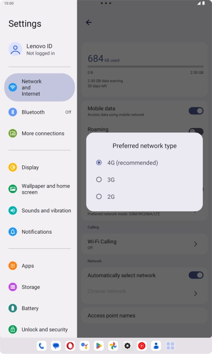 Press Preferred network type.