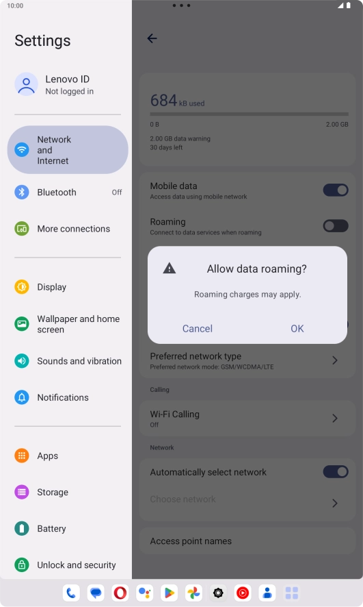 2 Turn data roaming on or off