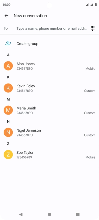 Press the field next to "To" and key in the first letters of the recipient's name.
