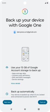 The phone memory will be backed up automatically when your phone is charging, the screen lock is turned on and a Wi-Fi connection is established.