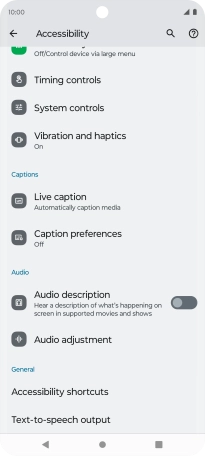 Press the required category below "Captions" and follow the instructions on the screen to select the required settings.