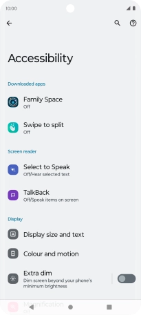 Press the required category below "Screen reader" and follow the instructions on the screen to select the required settings.