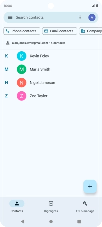 Press and hold the required contact.
