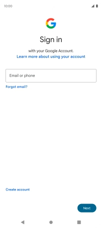 If you don't have a Google account, press Create account and follow the instructions on the screen to create an account.