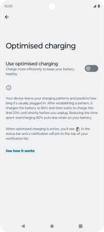 Press the indicator next to "Use optimised charging" to turn the function on or off.