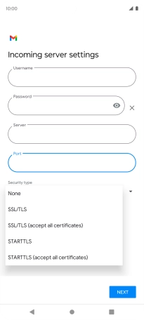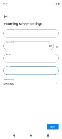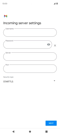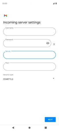Press the field below "Server" and key in the name of your email provider's incoming server.