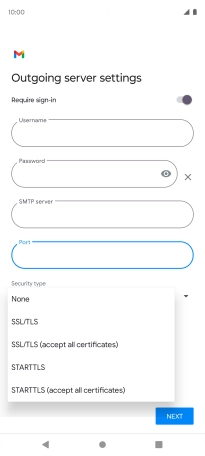 Press the field below "Username" and key in the username for your email the email provider's outgoing server.