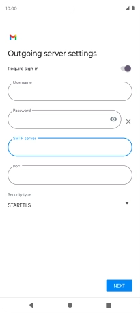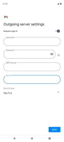 Press the field below "SMTP server" and key in the name of your email provider's outgoing server.