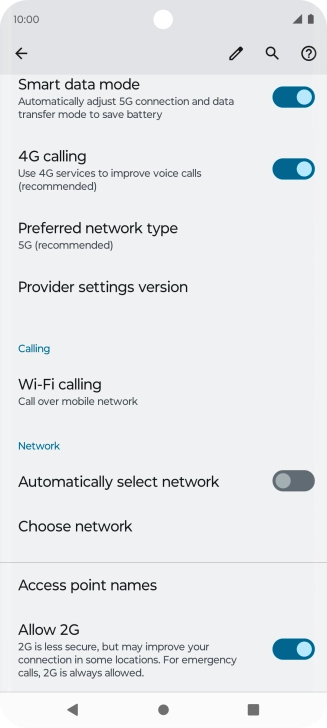 Press the indicator next to "Automatically select network" to turn on the function.