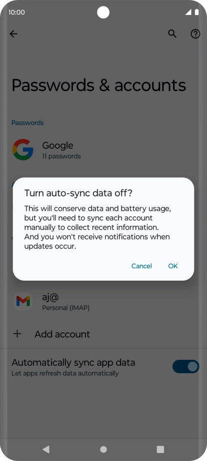 Press the indicator next to "Automatically sync app data" to turn the function on or off.