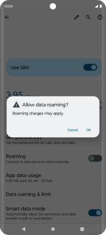 If you turn on data roaming, press OK.