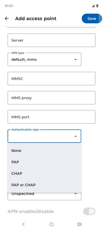 7. Select APN type