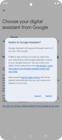 Press Google Assistant features in Gemini and follow the instructions on the screen to turn use of Google Assistant functions on or off.