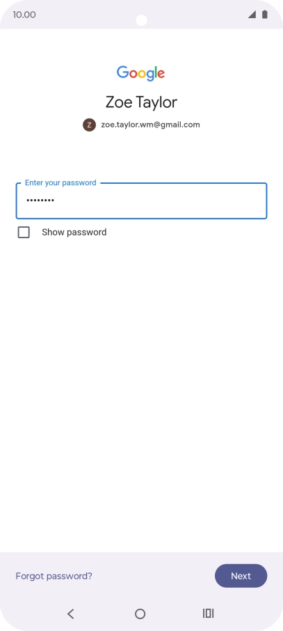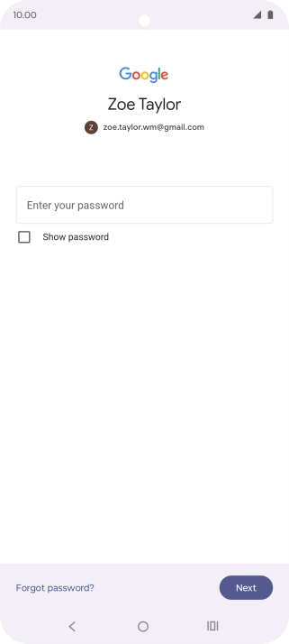 Press the field below "Enter your password" and key in the password for your Google account.