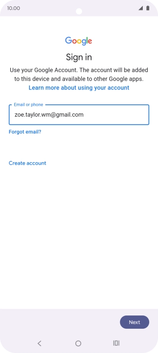 If you don't have a Google account, press Create account and follow the instructions on the screen to create an account.