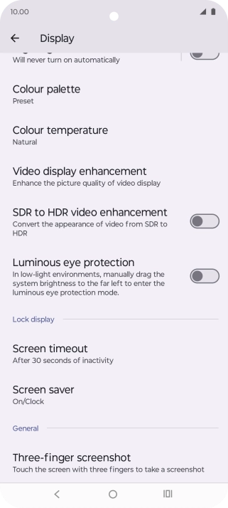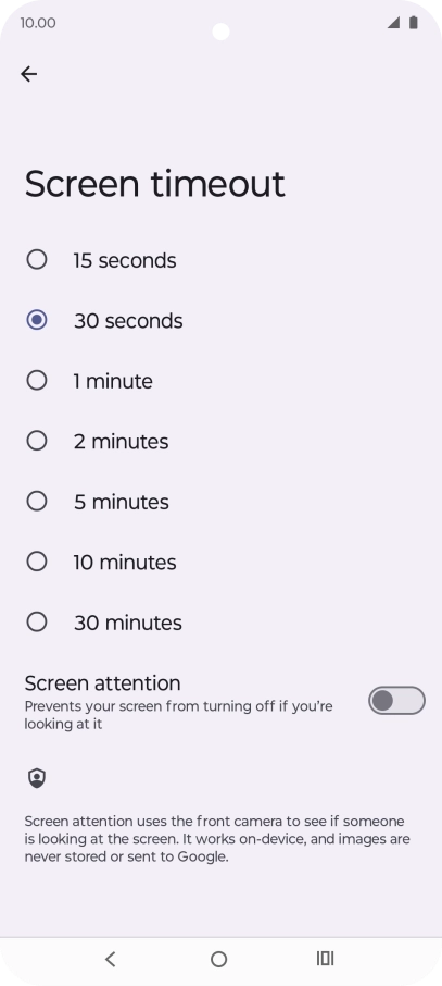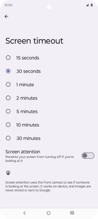 Press Screen timeout.
