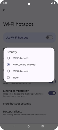 Press WPA3-Personal to password protect your Wi-Fi hotspot.