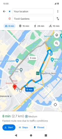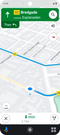 The travel information at the bottom of the screen shows your estimated time of arrival and distance to destination.