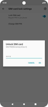 Press the indicator next to "Lock SIM card" to turn the function on or off.