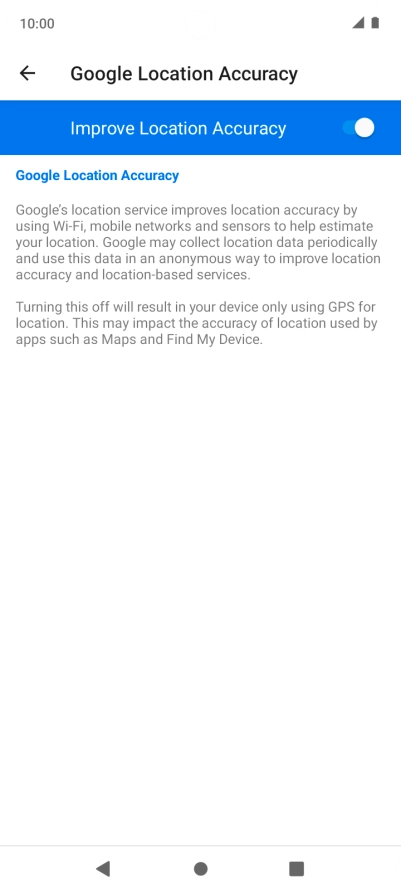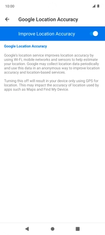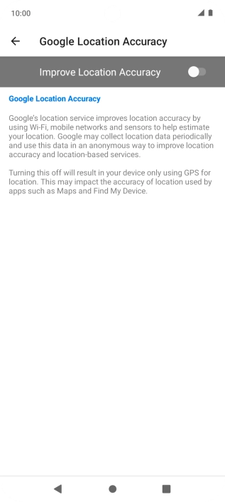 If you press the indicator next to "Improve Location Accuracy" to turn off the function, your phone can find your exact position using the GPS satellites but it may take longer as there is no access to supplementary information from the mobile network or nearby Wi-Fi networks.