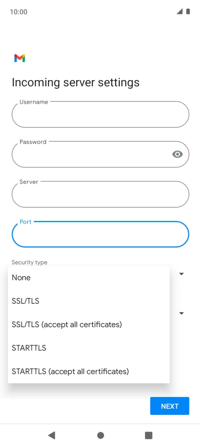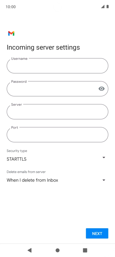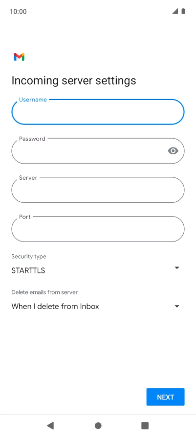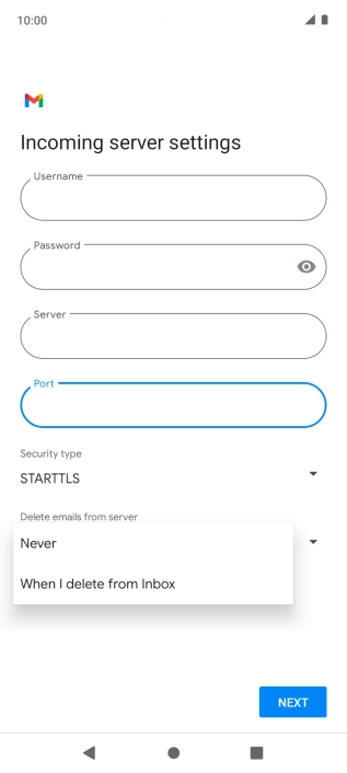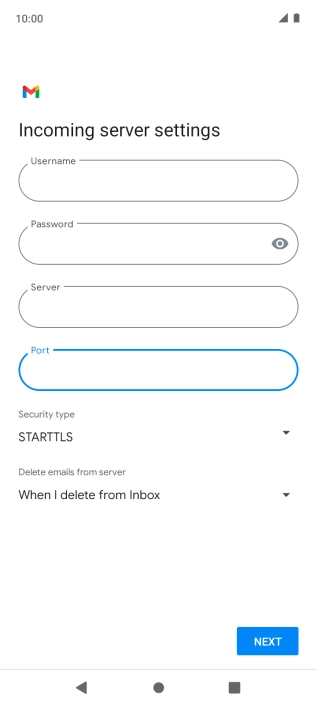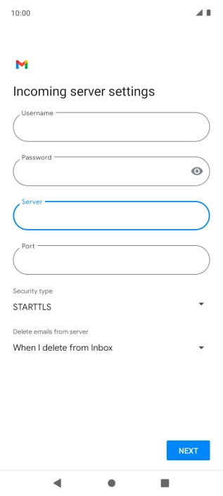 Press the field below "Server" and key in the name of your email provider's incoming server.