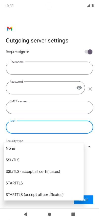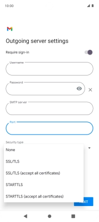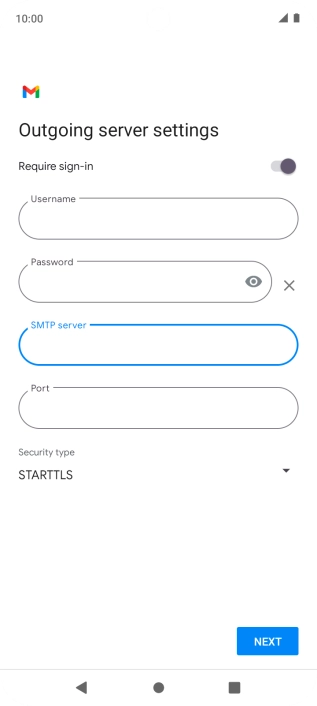 Press the field below "Username" and key in the username for your email the email provider's outgoing server.