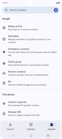 Import contacts from your SIM to your Google account on your Motorola Moto Edge 50 Pro 5G Android 14