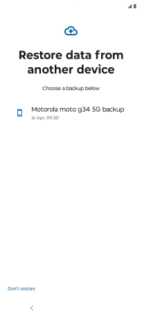 When this screen is displayed, your phone is ready to restore content from a Google One backup.