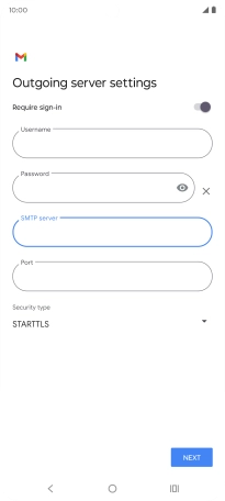 Press the field below "SMTP server" and key in the name of your email provider's outgoing server.