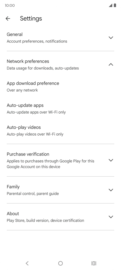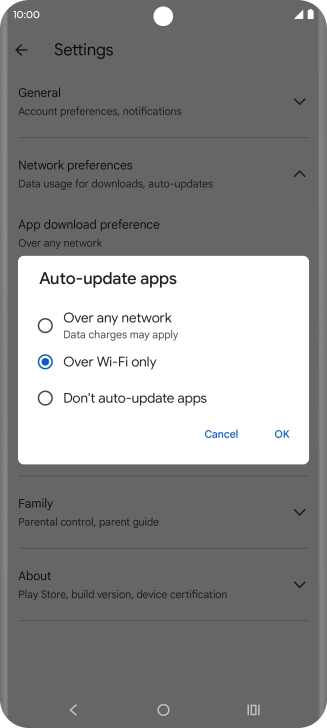 To turn on automatic update of apps using Wi-Fi, press Over Wi-Fi only.