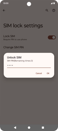 Press the indicator next to "Lock SIM" to turn the function on or off.